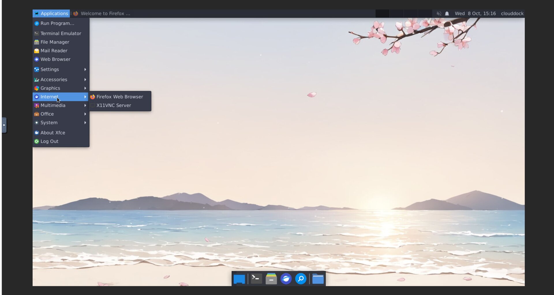 You can also launch the browser from the Application menu: click the Application menu in the top-left corner, hover over Internet.
