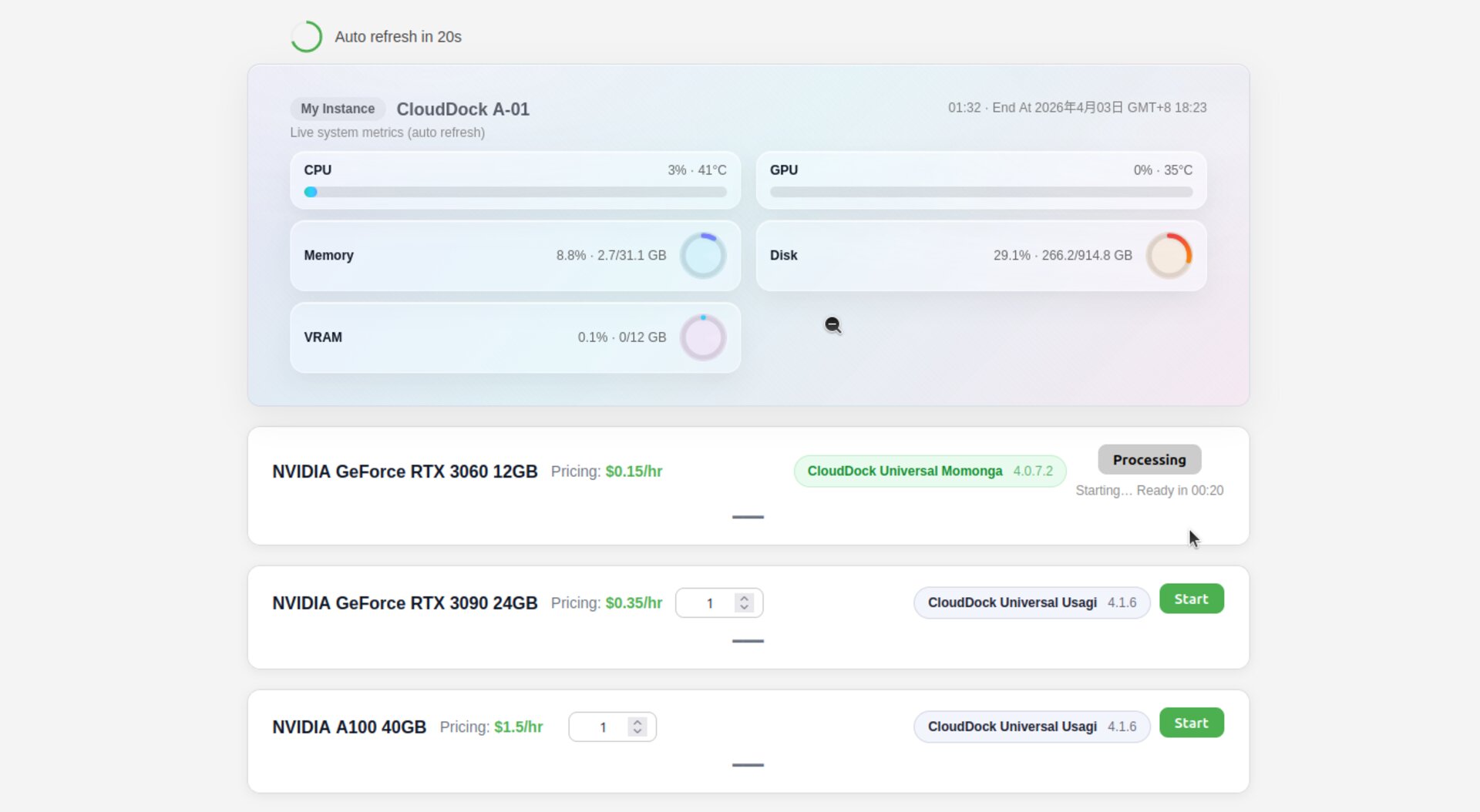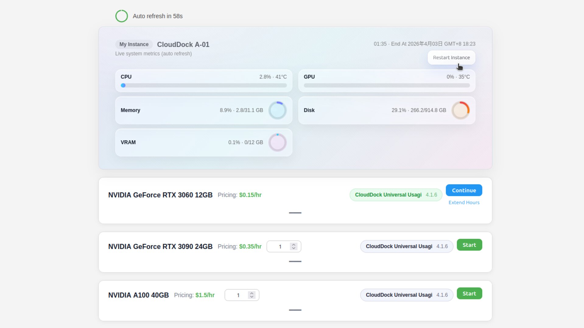 Choose the image that matches your work:Universal (SD + Jupyter) for daily SD workflow,or DeepSpeed for deep learning workloads.