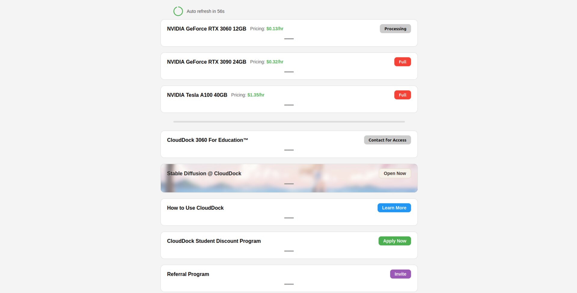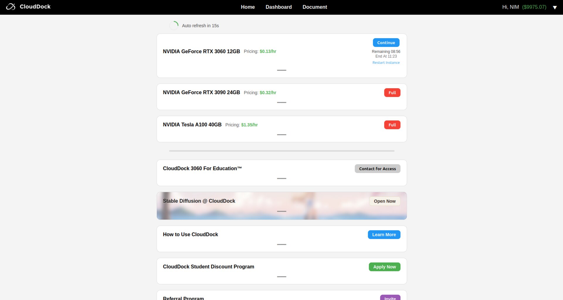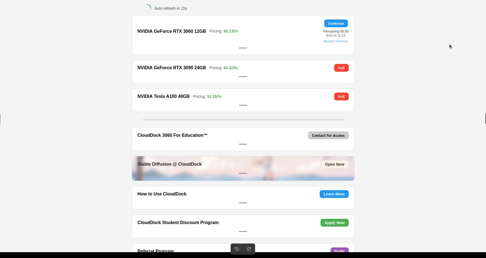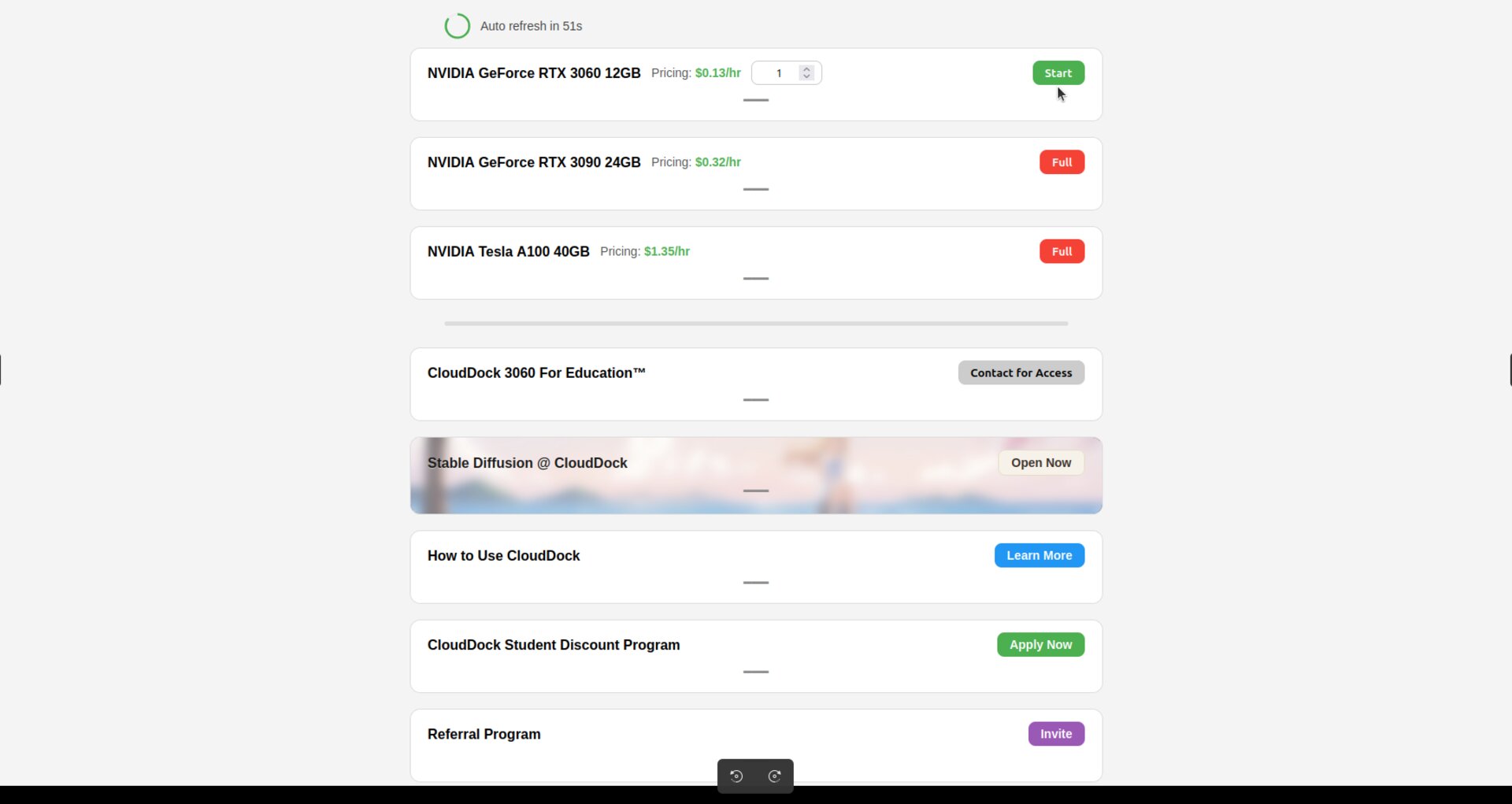 Enter the desired duration and click Start. Resources are allocated instantly.